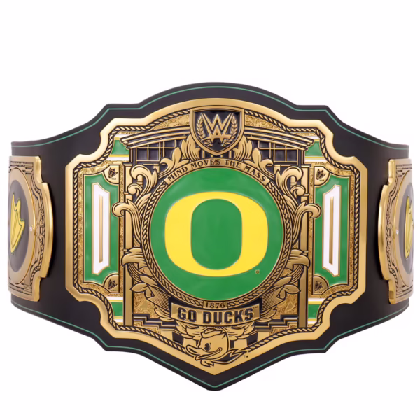 Game time just got a whole lot more interesting thanks to the WWE. Champion your Oregon Ducks pride with this WWE Legacy Title Belt. Slung over your shoulder or fitted around your waist, it will be easy to channel your inner “Stone Cold” Steve Austin, John Cena or Roman Reigns while cheering on the Oregon Ducks. The glory of the NCAA and the prestige of the WWE make for one great tag team.